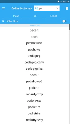 • Search autocomplete helps find words quickly by displaying predictions as you type