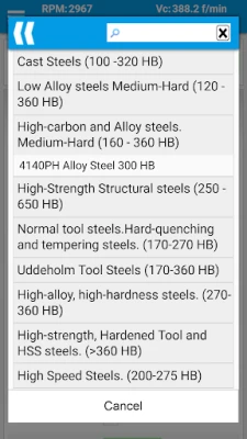 Calculate Speeds and Feeds simply by choosing your work, tool type and tool material.