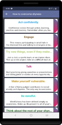 To overcome our shyness we must learn how to open in front of other people, we must accept our weakness and speak our mind with confidence. We know the various obstacles that hinder you from letting your thoughts out. Just come to us with your problem and we are here to help you.