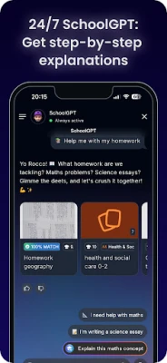 Confused about right angles in geometry, or can't understand biology? The Knowunity SchoolGPT study app has you covered. Need a short summary of the topics? Yep. Anything AP classes related? Ofcourse! Math & biology & geometry quizzes? Uh huh, that too ☄️💫