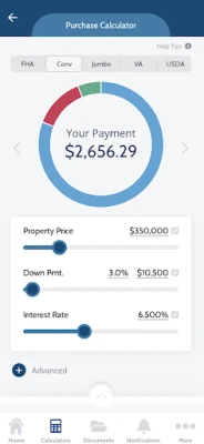 App Features: - Calculate payments to the penny with 13 precise calculators - Estimate home affordability - Decide whether or not to refinance - Chart your home buying journey with a step-by-step guide - Identify the right loan program - Track your progress with interactive checklist - Stay informed with mobile blogs - Scan and upload your loan documents securely - Connect instantly with your loan officer via messaging and push notifications calculations: