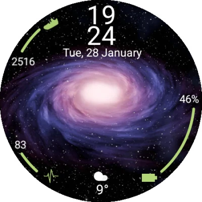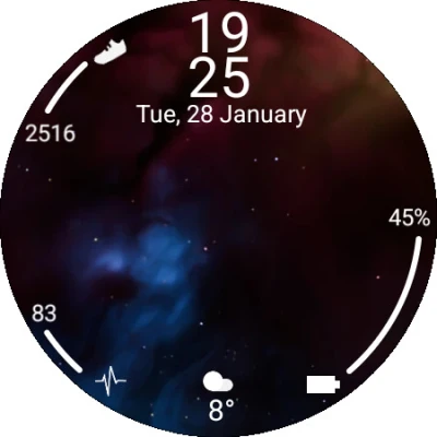 Sink into Outer Space thanks to hypnotizing animated background. This Watch Face is not only beautiful looking but also functional.