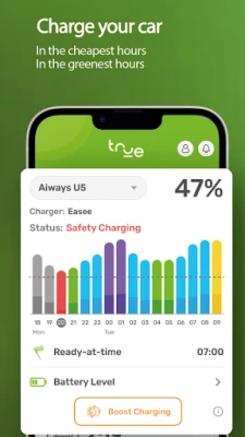 Did you know your EV can help stabilize the power grid? True Energy automatically manages your charging sessions, makes sure your car participates in grid-balancing efforts, and earns you rewards in the process. Wake up to a fully charged car and a smaller electricity bill for charging in the cheapest hours, while knowing you've contributed to a greener, more sustainable future. What’s not to like about that?