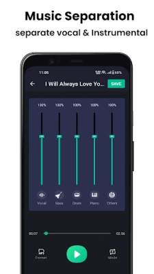 Introducing Vocal Remover, your go-to app for creating perfect karaoke tracks. Harness the power of cutting-edge technology to split songs into separate vocal and instrumental components, and generate your very own personalized accompaniment.